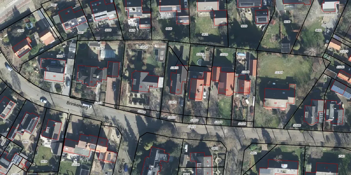 Brinkerweg 24 is gelegen op kadastraal perceel BNK01E11473. Deze kadastrale aanduiding is uniek en wordt gebruikt door het Kadaster om eigendomsrechten en andere zakelijke rechten vast te leggen. Het perceel maakt onderdeel uit van de kadastrale gemeente Bennekom.