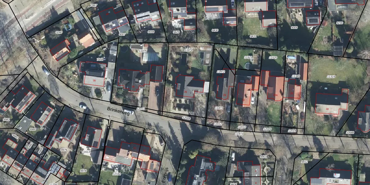 Het perceel waarop Brinkerweg 26 staat heeft een oppervlakte van 945 m². Dit is een groot perceel. De perceeloppervlakte wordt geregistreerd door het Kadaster. Gedetailleerde informatie over de maten van dit perceel kunt u vinden in het rapport Kadastrale kaart met maatvoering van Brinkerweg 26.