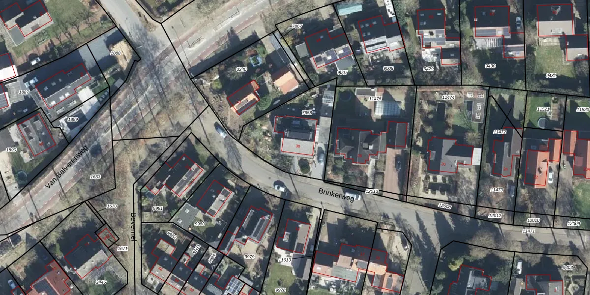 Het perceel waarop Brinkerweg 30 staat heeft een oppervlakte van 683 m². Dit is een groot perceel. De perceeloppervlakte wordt geregistreerd door het Kadaster. Gedetailleerde informatie over de maten van dit perceel kunt u vinden in het rapport Kadastrale kaart met maatvoering van Brinkerweg 30.