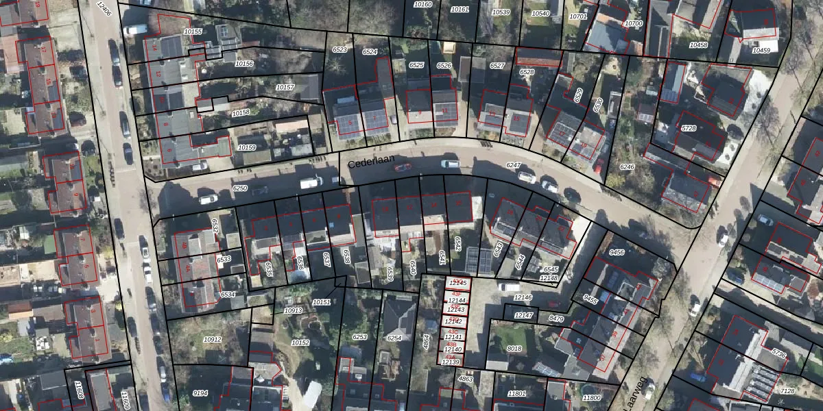 Cederlaan 12 is gelegen op kadastraal perceel BNK01E6540. Deze kadastrale aanduiding is uniek en wordt gebruikt door het Kadaster om eigendomsrechten en andere zakelijke rechten vast te leggen. Het perceel maakt onderdeel uit van de kadastrale gemeente Bennekom.
