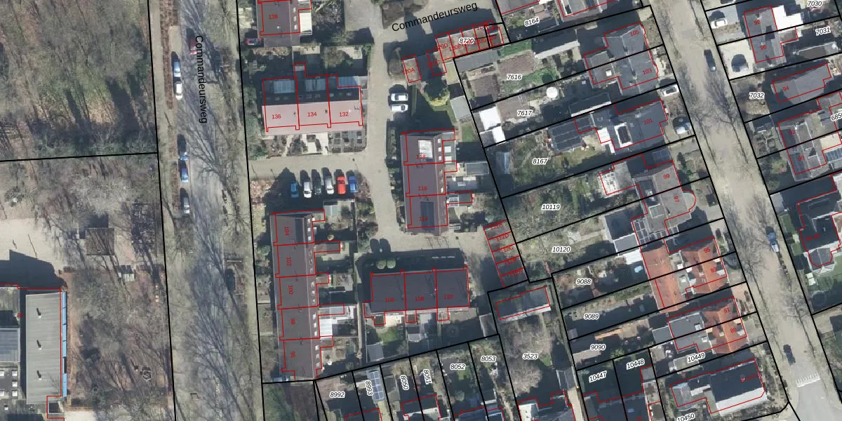 Het perceel waarop Commandeursweg 114 staat heeft een oppervlakte van 1,0 ha. Dit is een zeer groot perceel. De perceeloppervlakte wordt geregistreerd door het Kadaster. Gedetailleerde informatie over de maten van dit perceel kunt u vinden in het rapport Kadastrale kaart met maatvoering van Commandeursweg 114.