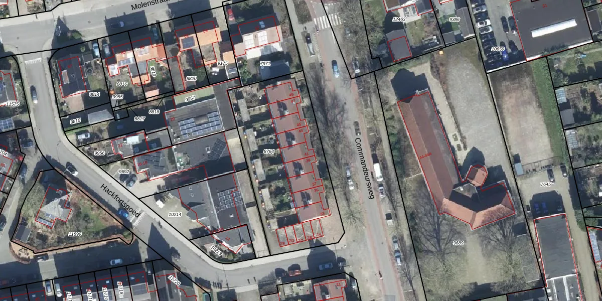 Het perceel waarop Commandeursweg 41 staat heeft een oppervlakte van 1494 m². Dit is een zeer groot perceel. De perceeloppervlakte wordt geregistreerd door het Kadaster. Gedetailleerde informatie over de maten van dit perceel kunt u vinden in het rapport Kadastrale kaart met maatvoering van Commandeursweg 41.