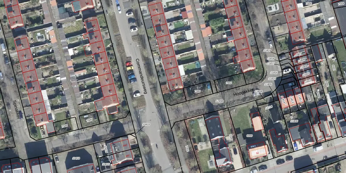 Het perceel waarop Commandeursweg 50 staat heeft een oppervlakte van 6940 m². Dit is een zeer groot perceel. De perceeloppervlakte wordt geregistreerd door het Kadaster. Gedetailleerde informatie over de maten van dit perceel kunt u vinden in het rapport Kadastrale kaart met maatvoering van Commandeursweg 50.