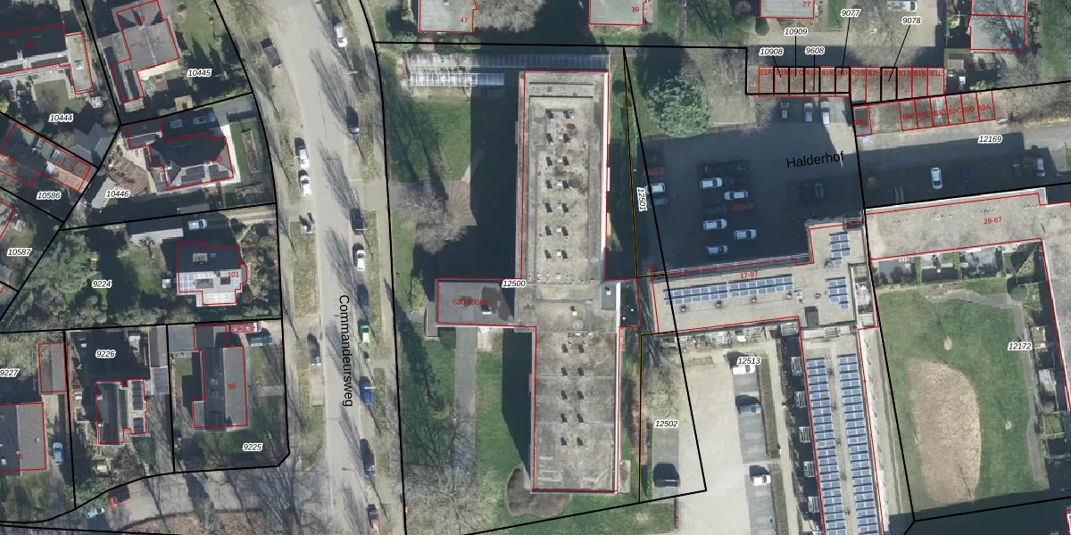 Het perceel waarop Commandeursweg 500-D-1 staat heeft een oppervlakte van 4138 m². Dit is een zeer groot perceel. De perceeloppervlakte wordt geregistreerd door het Kadaster. Gedetailleerde informatie over de maten van dit perceel kunt u vinden in het rapport Kadastrale kaart met maatvoering van Commandeursweg 500-D-1.