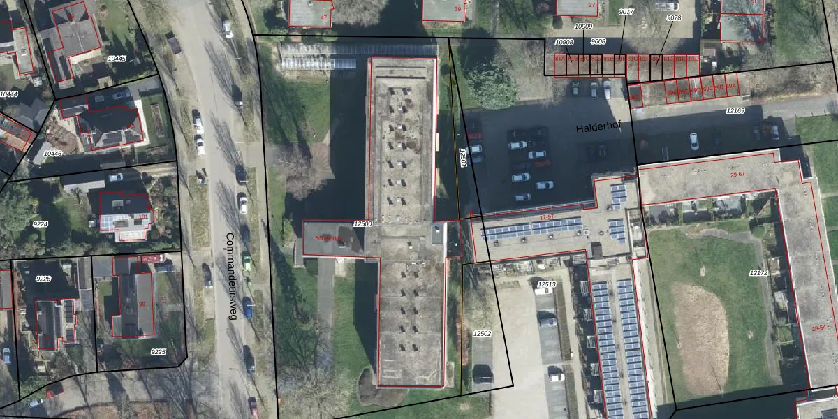 Het perceel waarop Commandeursweg 500-F-2 staat heeft een oppervlakte van 4138 m². Dit is een zeer groot perceel. De perceeloppervlakte wordt geregistreerd door het Kadaster. Gedetailleerde informatie over de maten van dit perceel kunt u vinden in het rapport Kadastrale kaart met maatvoering van Commandeursweg 500-F-2.