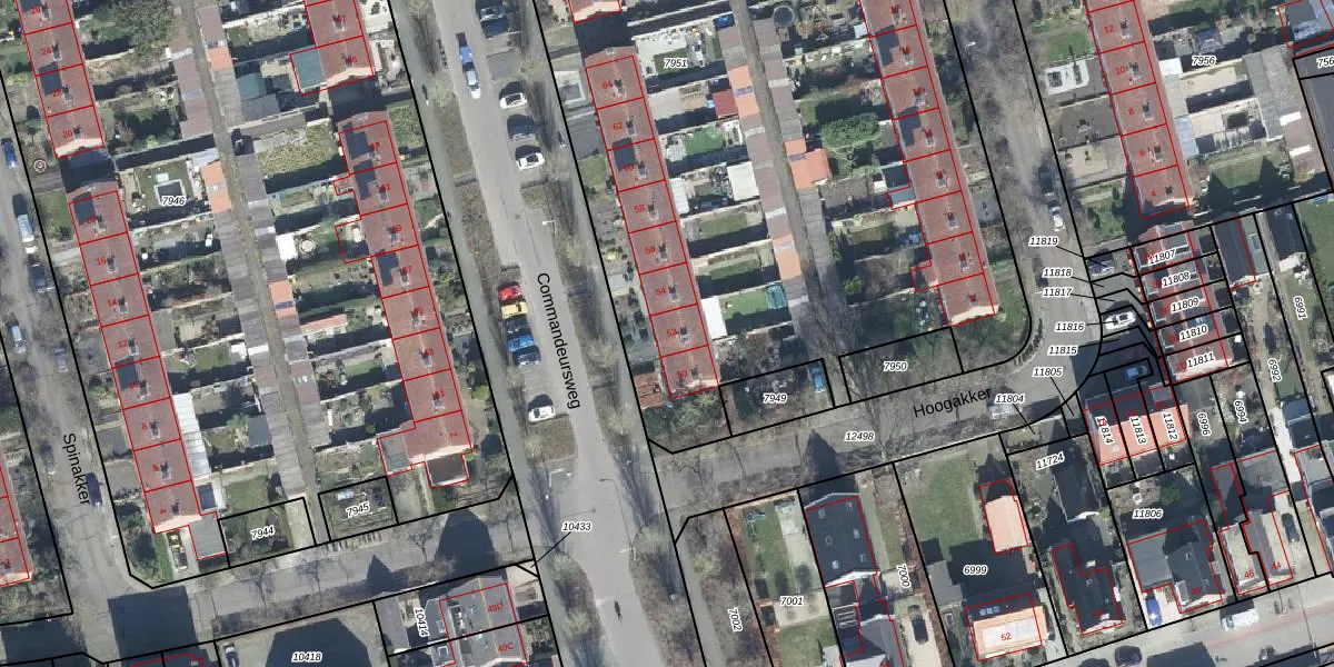 Het perceel waarop Commandeursweg 52 staat heeft een oppervlakte van 6940 m². Dit is een zeer groot perceel. De perceeloppervlakte wordt geregistreerd door het Kadaster. Gedetailleerde informatie over de maten van dit perceel kunt u vinden in het rapport Kadastrale kaart met maatvoering van Commandeursweg 52.