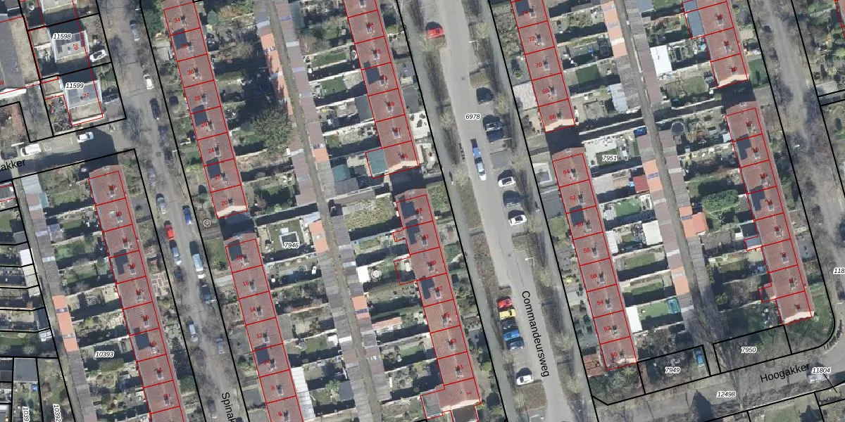 Het perceel waarop Commandeursweg 63 staat heeft een oppervlakte van 6943 m². Dit is een zeer groot perceel. De perceeloppervlakte wordt geregistreerd door het Kadaster. Gedetailleerde informatie over de maten van dit perceel kunt u vinden in het rapport Kadastrale kaart met maatvoering van Commandeursweg 63.