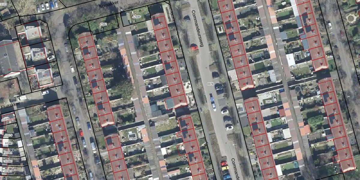 Het perceel waarop Commandeursweg 67 staat heeft een oppervlakte van 6943 m². Dit is een zeer groot perceel. De perceeloppervlakte wordt geregistreerd door het Kadaster. Gedetailleerde informatie over de maten van dit perceel kunt u vinden in het rapport Kadastrale kaart met maatvoering van Commandeursweg 67.