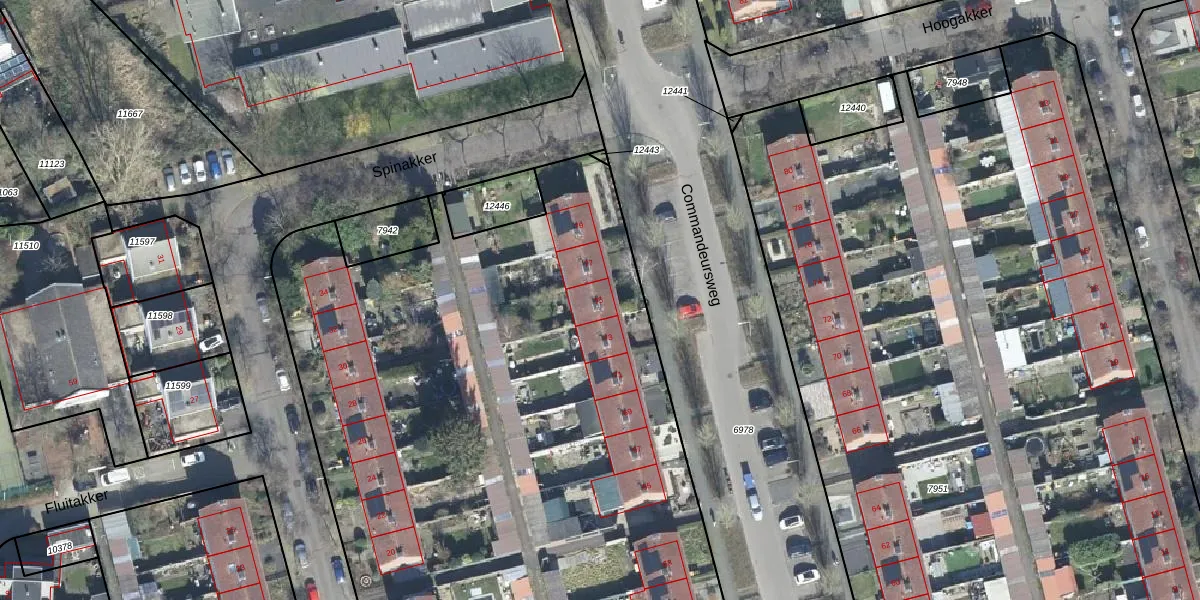 Het perceel waarop Commandeursweg 75 staat heeft een oppervlakte van 6943 m². Dit is een zeer groot perceel. De perceeloppervlakte wordt geregistreerd door het Kadaster. Gedetailleerde informatie over de maten van dit perceel kunt u vinden in het rapport Kadastrale kaart met maatvoering van Commandeursweg 75.