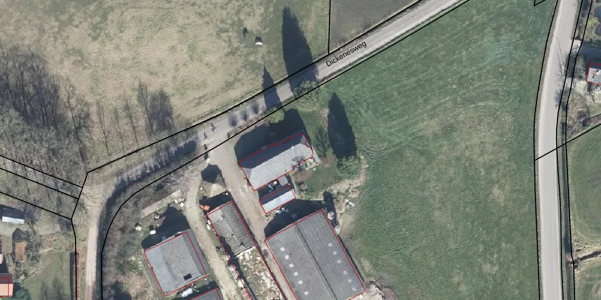 Het perceel waarop Dickenesweg 1 staat heeft een oppervlakte van 2,3 ha. Dit is een zeer groot perceel. De perceeloppervlakte wordt geregistreerd door het Kadaster. Gedetailleerde informatie over de maten van dit perceel kunt u vinden in het rapport Kadastrale kaart met maatvoering van Dickenesweg 1.