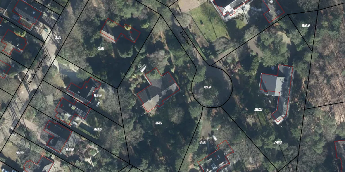 Het perceel waarop Ekerlaan 1 staat heeft een oppervlakte van 3076 m². Dit is een zeer groot perceel. De perceeloppervlakte wordt geregistreerd door het Kadaster. Gedetailleerde informatie over de maten van dit perceel kunt u vinden in het rapport Kadastrale kaart met maatvoering van Ekerlaan 1.