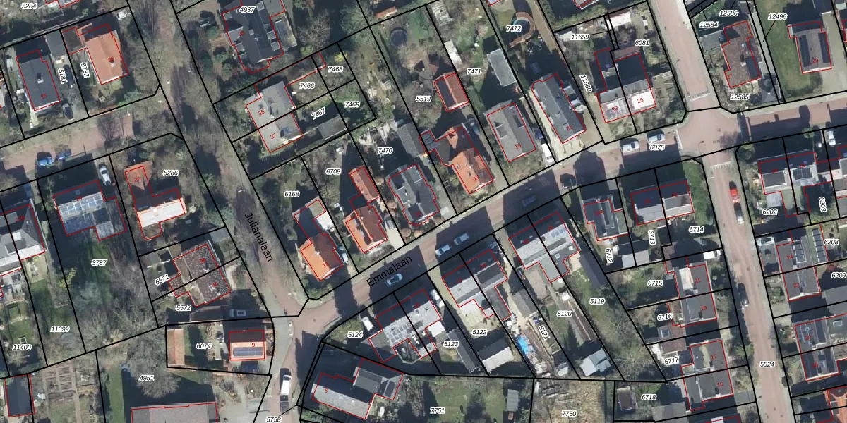Het perceel waarop Emmalaan 15 staat heeft een oppervlakte van 582 m². Dit is een groot perceel. De perceeloppervlakte wordt geregistreerd door het Kadaster. Gedetailleerde informatie over de maten van dit perceel kunt u vinden in het rapport Kadastrale kaart met maatvoering van Emmalaan 15.