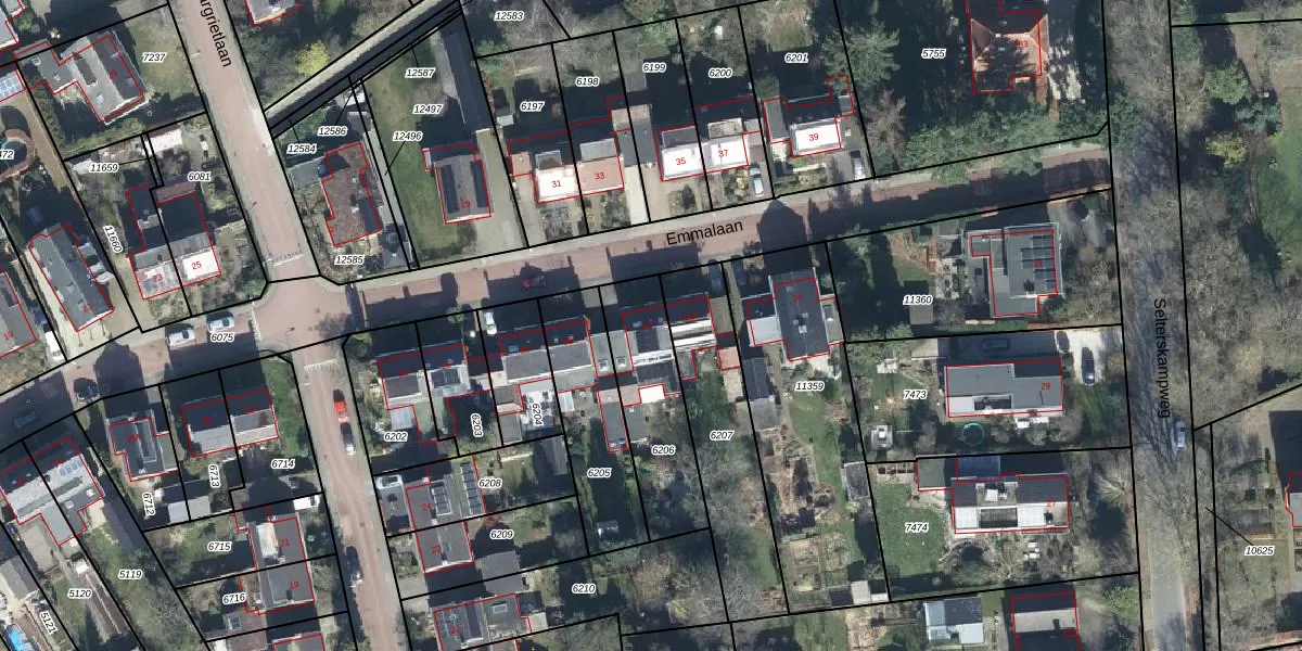 Het perceel waarop Emmalaan 32 staat heeft een oppervlakte van 381 m². Dit is een groot perceel. De perceeloppervlakte wordt geregistreerd door het Kadaster. Gedetailleerde informatie over de maten van dit perceel kunt u vinden in het rapport Kadastrale kaart met maatvoering van Emmalaan 32.