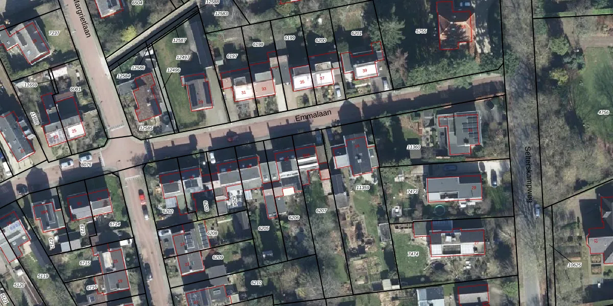 Het perceel waarop Emmalaan 32-A staat heeft een oppervlakte van 531 m². Dit is een groot perceel. De perceeloppervlakte wordt geregistreerd door het Kadaster. Gedetailleerde informatie over de maten van dit perceel kunt u vinden in het rapport Kadastrale kaart met maatvoering van Emmalaan 32-A.
