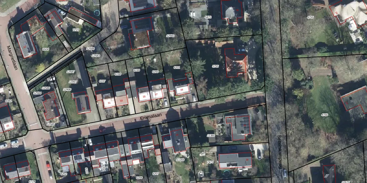 Het perceel waarop Emmalaan 39 staat heeft een oppervlakte van 457 m². Dit is een groot perceel. De perceeloppervlakte wordt geregistreerd door het Kadaster. Gedetailleerde informatie over de maten van dit perceel kunt u vinden in het rapport Kadastrale kaart met maatvoering van Emmalaan 39.