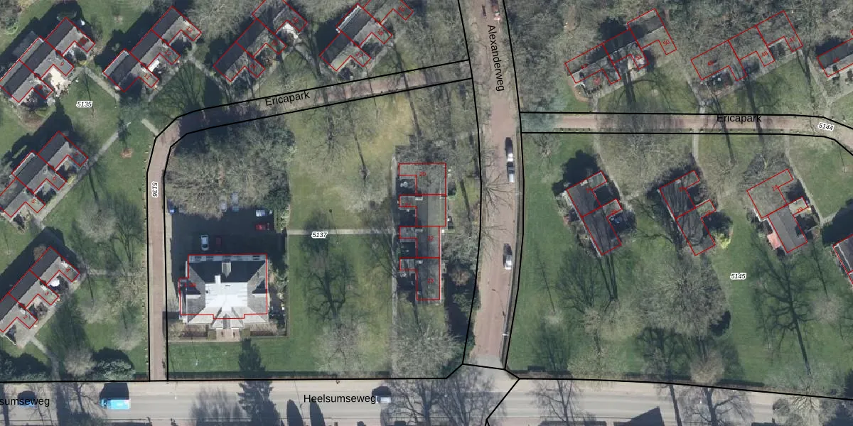 Het perceel waarop Ericapark 21 staat heeft een oppervlakte van 4600 m². Dit is een zeer groot perceel. De perceeloppervlakte wordt geregistreerd door het Kadaster. Gedetailleerde informatie over de maten van dit perceel kunt u vinden in het rapport Kadastrale kaart met maatvoering van Ericapark 21.