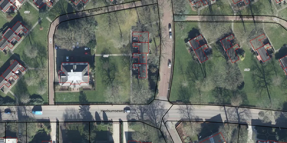 Het perceel waarop Ericapark 23 staat heeft een oppervlakte van 4600 m². Dit is een zeer groot perceel. De perceeloppervlakte wordt geregistreerd door het Kadaster. Gedetailleerde informatie over de maten van dit perceel kunt u vinden in het rapport Kadastrale kaart met maatvoering van Ericapark 23.