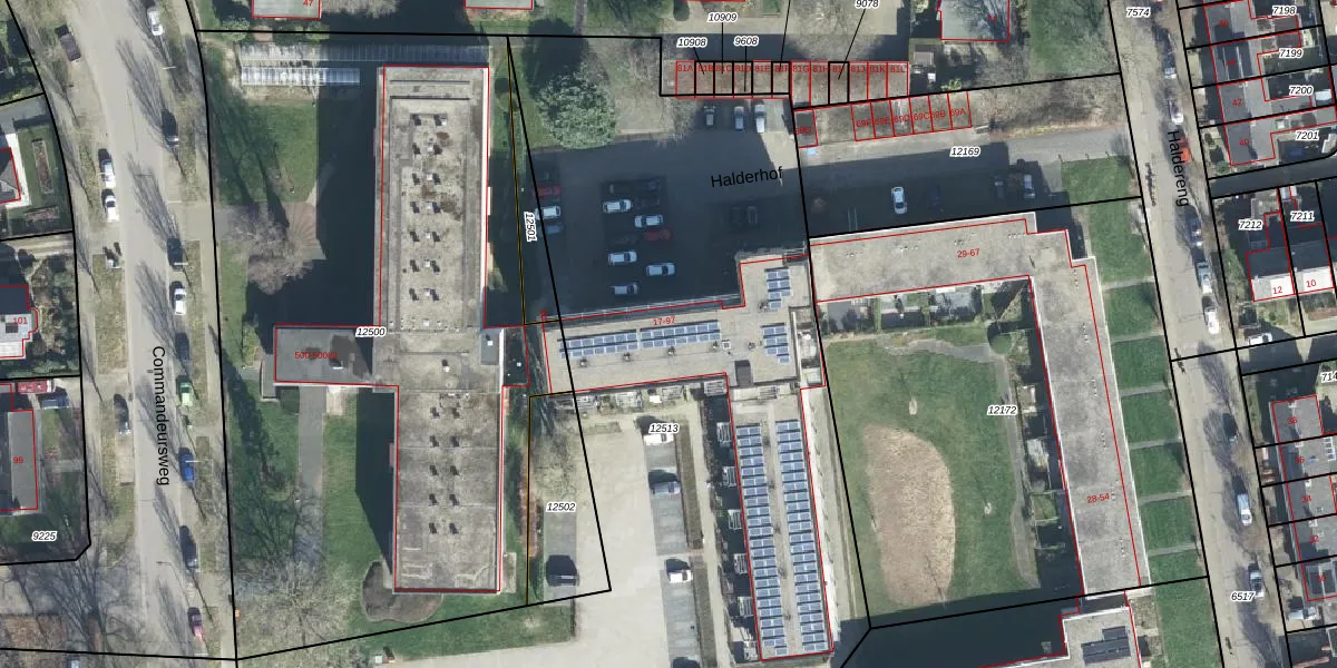 Het perceel waarop Halderhof 45 staat heeft een oppervlakte van 4448 m². Dit is een zeer groot perceel. De perceeloppervlakte wordt geregistreerd door het Kadaster. Gedetailleerde informatie over de maten van dit perceel kunt u vinden in het rapport Kadastrale kaart met maatvoering van Halderhof 45.