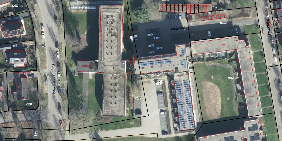 Het perceel waarop Halderhof 85 staat heeft een oppervlakte van 4448 m². Dit is een zeer groot perceel. De perceeloppervlakte wordt geregistreerd door het Kadaster. Gedetailleerde informatie over de maten van dit perceel kunt u vinden in het rapport Kadastrale kaart met maatvoering van Halderhof 85.