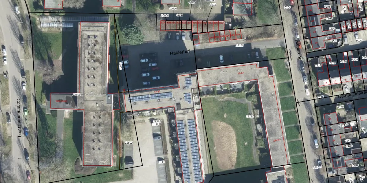 Het perceel waarop Halderhof 89 staat heeft een oppervlakte van 4448 m². Dit is een zeer groot perceel. De perceeloppervlakte wordt geregistreerd door het Kadaster. Gedetailleerde informatie over de maten van dit perceel kunt u vinden in het rapport Kadastrale kaart met maatvoering van Halderhof 89.