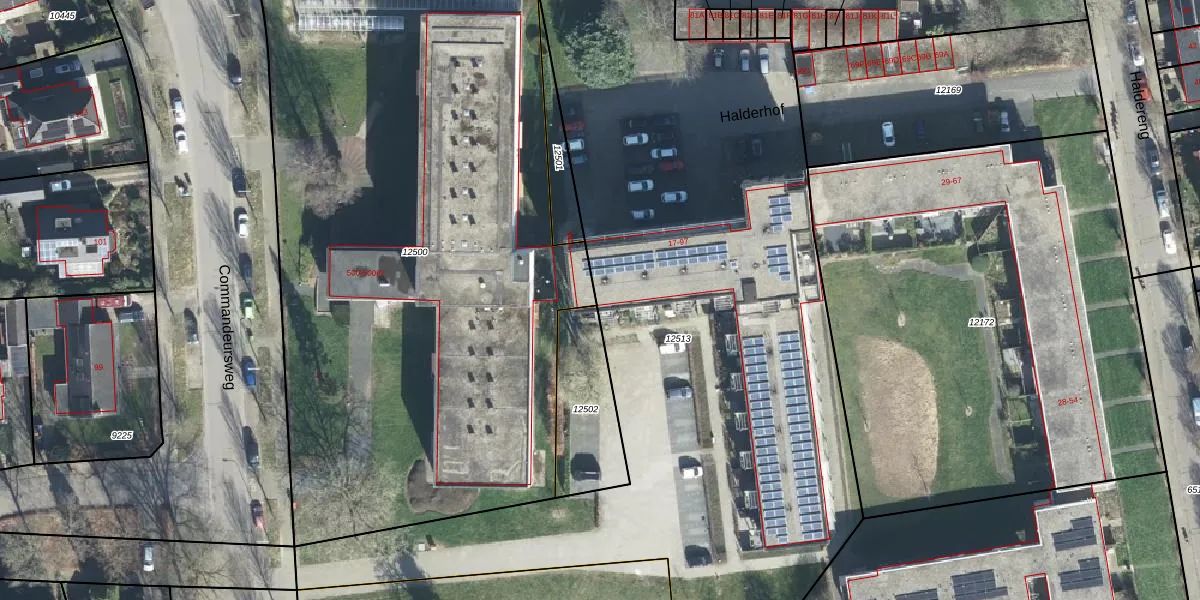 Het perceel waarop Halderhof 97 staat heeft een oppervlakte van 4448 m². Dit is een zeer groot perceel. De perceeloppervlakte wordt geregistreerd door het Kadaster. Gedetailleerde informatie over de maten van dit perceel kunt u vinden in het rapport Kadastrale kaart met maatvoering van Halderhof 97.