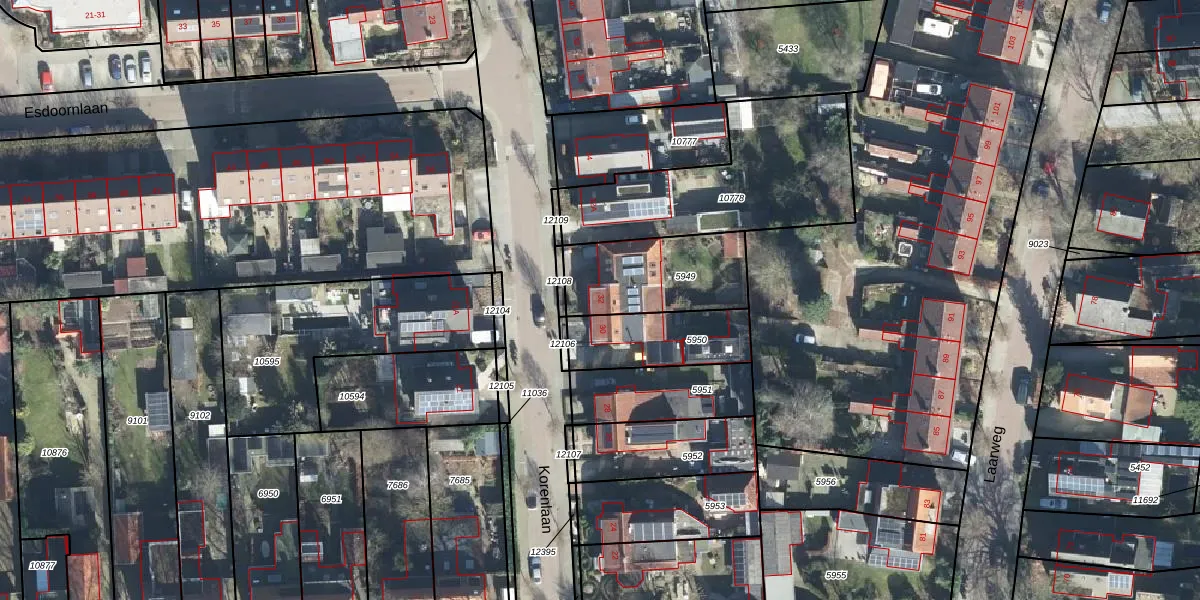 Korenlaan 32 is gelegen op kadastraal perceel BNK01E5949. Deze kadastrale aanduiding is uniek en wordt gebruikt door het Kadaster om eigendomsrechten en andere zakelijke rechten vast te leggen. Het perceel maakt onderdeel uit van de kadastrale gemeente Bennekom.