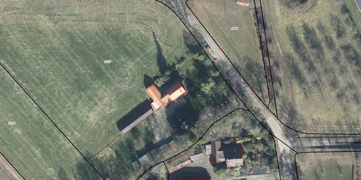 Het perceel waarop Krommesteeg 21 staat heeft een oppervlakte van 1,0 ha. Dit is een zeer groot perceel. De perceeloppervlakte wordt geregistreerd door het Kadaster. Gedetailleerde informatie over de maten van dit perceel kunt u vinden in het rapport Kadastrale kaart met maatvoering van Krommesteeg 21.