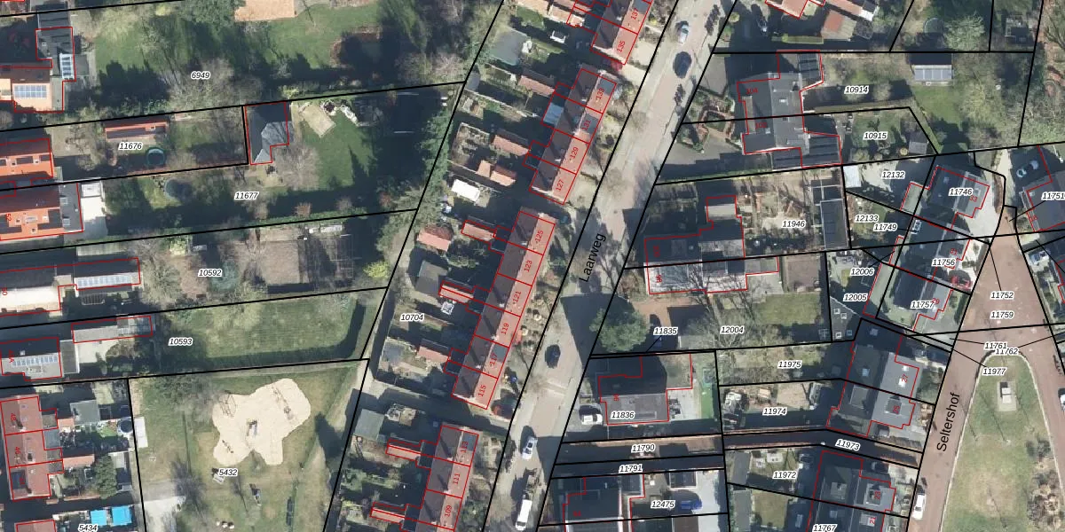 Het perceel waarop Laarweg 123 staat heeft een oppervlakte van 6355 m². Dit is een zeer groot perceel. De perceeloppervlakte wordt geregistreerd door het Kadaster. Gedetailleerde informatie over de maten van dit perceel kunt u vinden in het rapport Kadastrale kaart met maatvoering van Laarweg 123.
