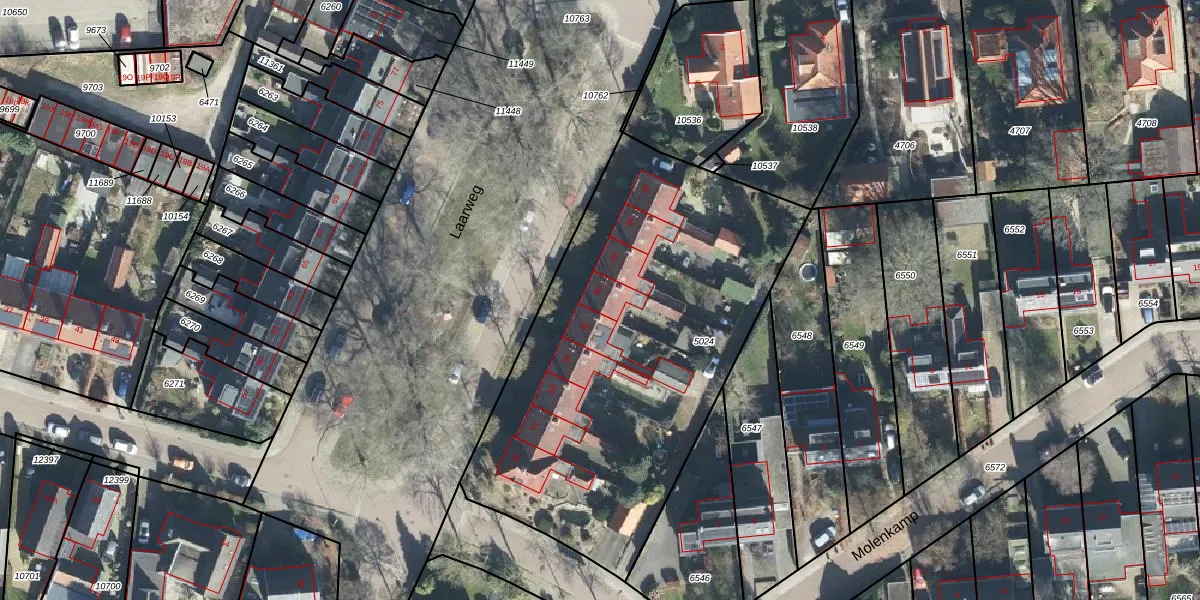 Het perceel waarop Laarweg 60 staat heeft een oppervlakte van 2175 m². Dit is een zeer groot perceel. De perceeloppervlakte wordt geregistreerd door het Kadaster. Gedetailleerde informatie over de maten van dit perceel kunt u vinden in het rapport Kadastrale kaart met maatvoering van Laarweg 60.