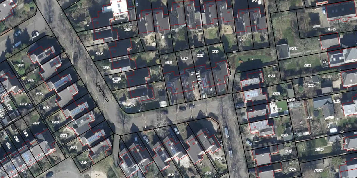 Het perceel waarop Langhoven 25 staat heeft een oppervlakte van 264 m². Dit is een middelgroot perceel. De perceeloppervlakte wordt geregistreerd door het Kadaster. Gedetailleerde informatie over de maten van dit perceel kunt u vinden in het rapport Kadastrale kaart met maatvoering van Langhoven 25.