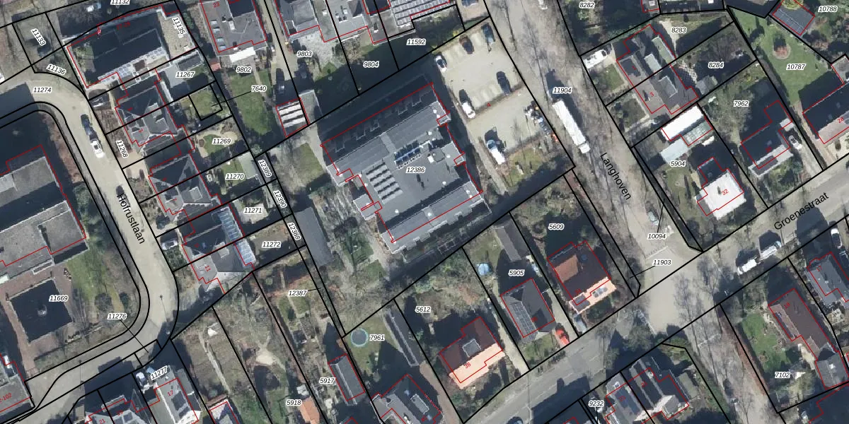 Het perceel waarop Langhoven 4-C-7 staat heeft een oppervlakte van 2764 m². Dit is een zeer groot perceel. De perceeloppervlakte wordt geregistreerd door het Kadaster. Gedetailleerde informatie over de maten van dit perceel kunt u vinden in het rapport Kadastrale kaart met maatvoering van Langhoven 4-C-7.