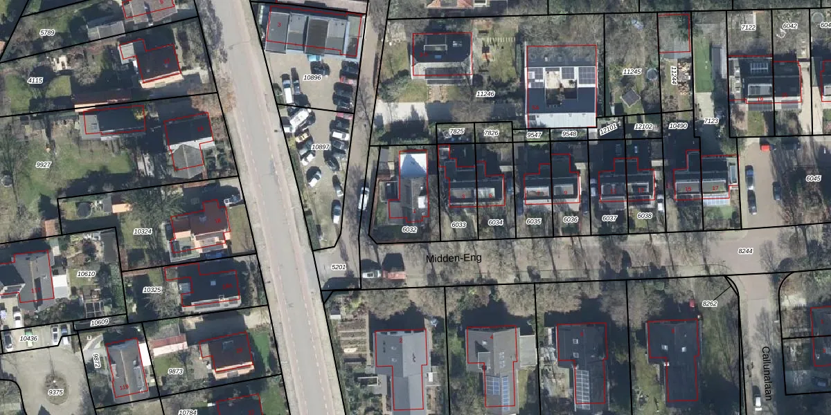 Het perceel waarop Midden-Eng 1 staat heeft een oppervlakte van 363 m². Dit is een groot perceel. De perceeloppervlakte wordt geregistreerd door het Kadaster. Gedetailleerde informatie over de maten van dit perceel kunt u vinden in het rapport Kadastrale kaart met maatvoering van Midden-Eng 1.