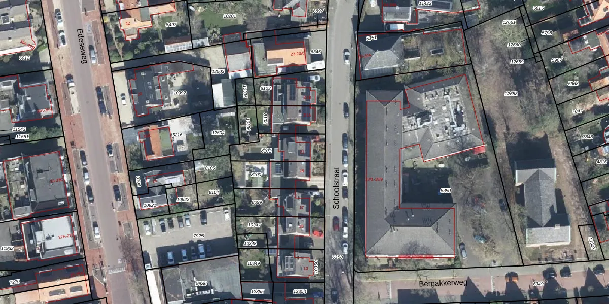 Schoolstraat 21 is gelegen op kadastraal perceel BNK01E8101. Deze kadastrale aanduiding is uniek en wordt gebruikt door het Kadaster om eigendomsrechten en andere zakelijke rechten vast te leggen. Het perceel maakt onderdeel uit van de kadastrale gemeente Bennekom.