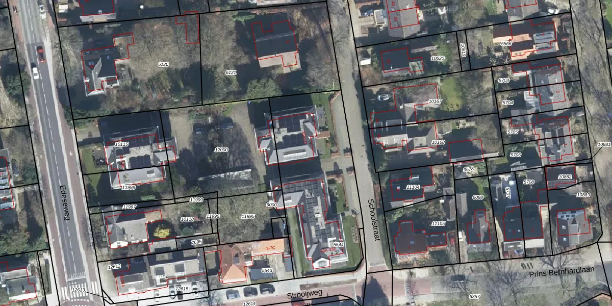 Het perceel waarop Schoolstraat 35-A staat heeft een oppervlakte van 1421 m². Dit is een zeer groot perceel. De perceeloppervlakte wordt geregistreerd door het Kadaster. Gedetailleerde informatie over de maten van dit perceel kunt u vinden in het rapport Kadastrale kaart met maatvoering van Schoolstraat 35-A.