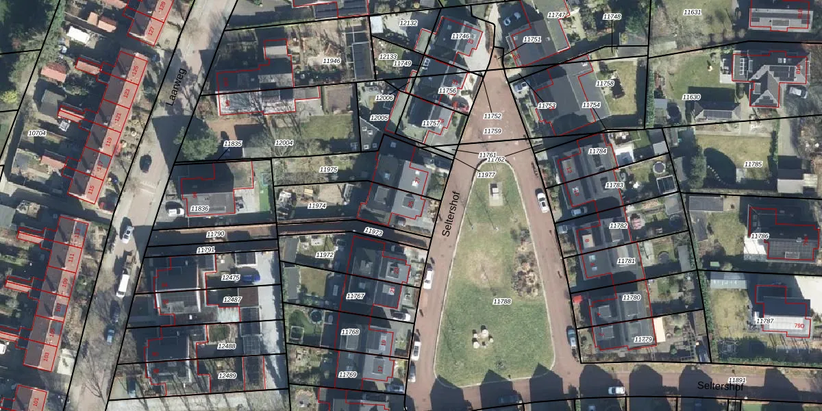 Het perceel waarop Seltershof 25 staat heeft een oppervlakte van 378 m². Dit is een groot perceel. De perceeloppervlakte wordt geregistreerd door het Kadaster. Gedetailleerde informatie over de maten van dit perceel kunt u vinden in het rapport Kadastrale kaart met maatvoering van Seltershof 25.