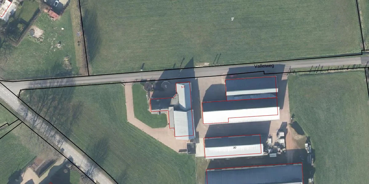 Het perceel waarop Valleiweg 5 staat heeft een oppervlakte van 1,3 ha. Dit is een zeer groot perceel. De perceeloppervlakte wordt geregistreerd door het Kadaster. Gedetailleerde informatie over de maten van dit perceel kunt u vinden in het rapport Kadastrale kaart met maatvoering van Valleiweg 5.