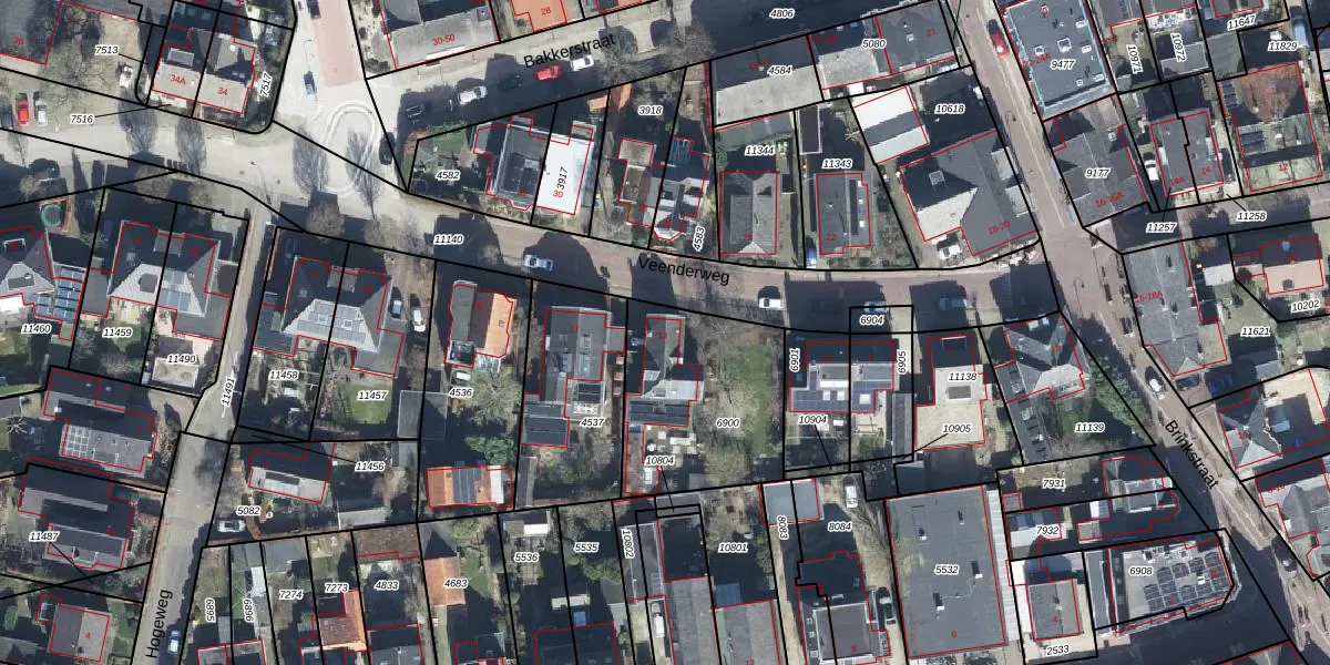 Gebruik de zoekbalk of klik op een perceel voor informatie over de adressen binnen dit perceel.
