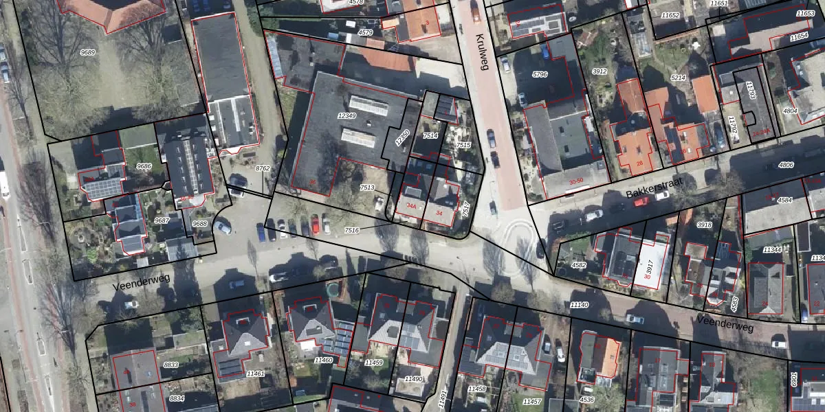 Veenderweg 34-A is gelegen op kadastraal perceel BNK01E7516. Deze kadastrale aanduiding is uniek en wordt gebruikt door het Kadaster om eigendomsrechten en andere zakelijke rechten vast te leggen. Het perceel maakt onderdeel uit van de kadastrale gemeente Bennekom.