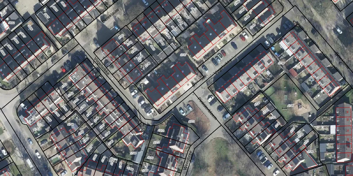 Het perceel waarop Vogelwikke 16 staat heeft een oppervlakte van 1435 m². Dit is een zeer groot perceel. De perceeloppervlakte wordt geregistreerd door het Kadaster. Gedetailleerde informatie over de maten van dit perceel kunt u vinden in het rapport Kadastrale kaart met maatvoering van Vogelwikke 16.