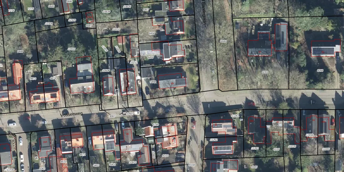 Het perceel waarop Vossenweg 45 staat heeft een oppervlakte van 597 m². Dit is een groot perceel. De perceeloppervlakte wordt geregistreerd door het Kadaster. Gedetailleerde informatie over de maten van dit perceel kunt u vinden in het rapport Kadastrale kaart met maatvoering van Vossenweg 45.