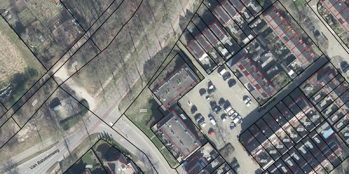 Het perceel waarop Wilgeroosje 28 staat heeft een oppervlakte van 1088 m². Dit is een zeer groot perceel. De perceeloppervlakte wordt geregistreerd door het Kadaster. Gedetailleerde informatie over de maten van dit perceel kunt u vinden in het rapport Kadastrale kaart met maatvoering van Wilgeroosje 28.