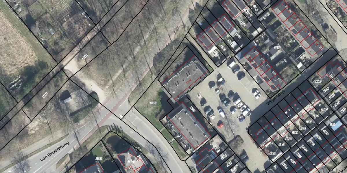 Het perceel waarop Wilgeroosje 32 staat heeft een oppervlakte van 1088 m². Dit is een zeer groot perceel. De perceeloppervlakte wordt geregistreerd door het Kadaster. Gedetailleerde informatie over de maten van dit perceel kunt u vinden in het rapport Kadastrale kaart met maatvoering van Wilgeroosje 32.
