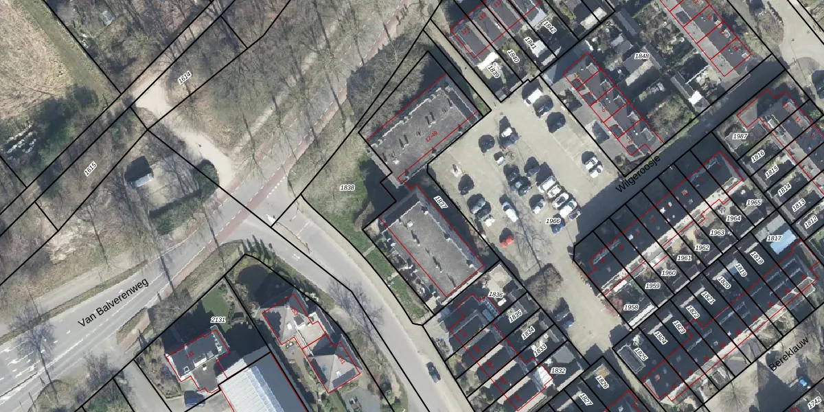 Het perceel waarop Wilgeroosje 37 staat heeft een oppervlakte van 1088 m². Dit is een zeer groot perceel. De perceeloppervlakte wordt geregistreerd door het Kadaster. Gedetailleerde informatie over de maten van dit perceel kunt u vinden in het rapport Kadastrale kaart met maatvoering van Wilgeroosje 37.