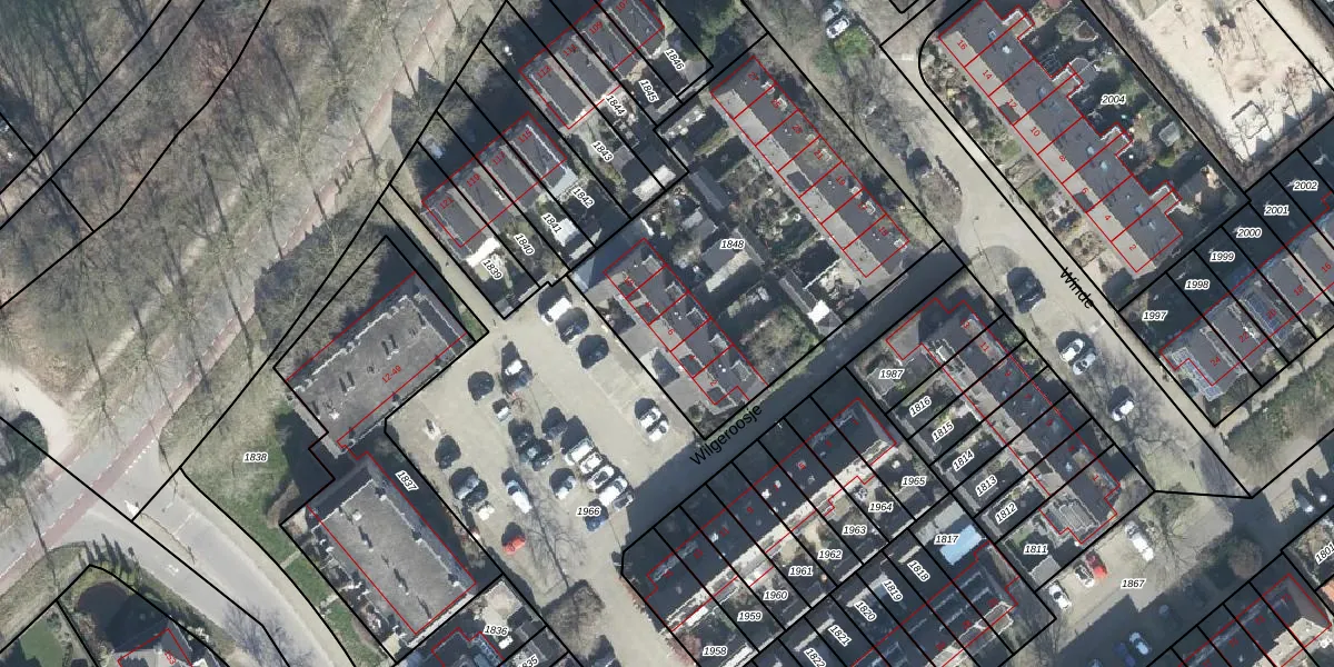 Het perceel waarop Wilgeroosje 6 staat heeft een oppervlakte van 1694 m². Dit is een zeer groot perceel. De perceeloppervlakte wordt geregistreerd door het Kadaster. Gedetailleerde informatie over de maten van dit perceel kunt u vinden in het rapport Kadastrale kaart met maatvoering van Wilgeroosje 6.