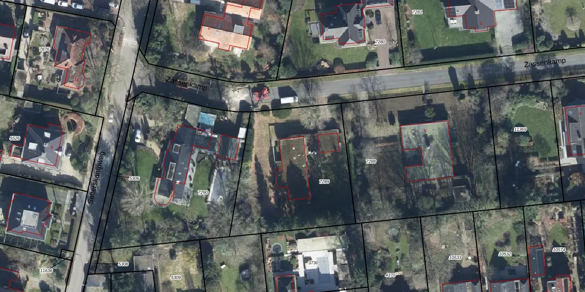 Het perceel waarop Zassenkamp 2 staat heeft een oppervlakte van 1584 m². Dit is een zeer groot perceel. De perceeloppervlakte wordt geregistreerd door het Kadaster. Gedetailleerde informatie over de maten van dit perceel kunt u vinden in het rapport Kadastrale kaart met maatvoering van Zassenkamp 2.