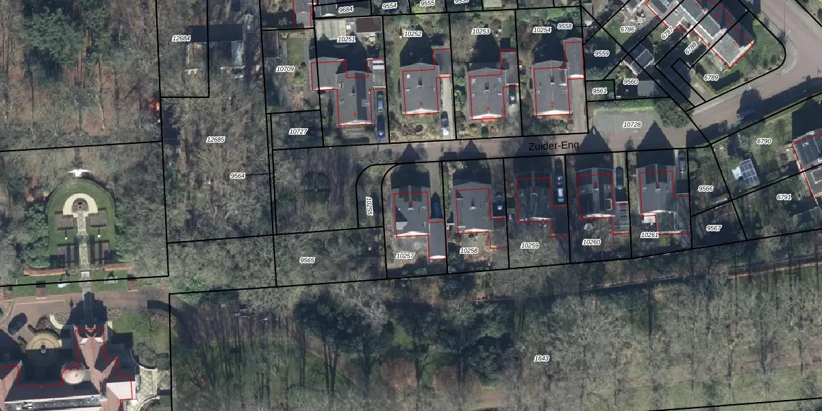 Het perceel waarop Zuider-Eng 9 staat heeft een oppervlakte van 415 m². Dit is een groot perceel. De perceeloppervlakte wordt geregistreerd door het Kadaster. Gedetailleerde informatie over de maten van dit perceel kunt u vinden in het rapport Kadastrale kaart met maatvoering van Zuider-Eng 9.