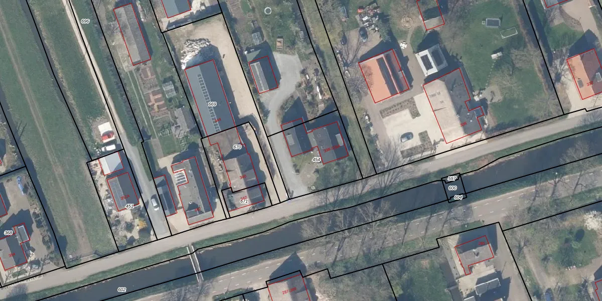 Het adres is gelegen op perceel 454 in de sectie E en de kadastrale gemeente Lopik. De kadastrale aanduiding is aldus LPK00-E-454. De gemiddelde perceelgrootte in Lopik is 1,1 ha. Dit perceel is kleiner: de perceeloppervlakte bedraagt 585 m². De grootste perceeloppervlakte in de kadastrale gemeente is 33,7 ha. De kleinste oppervlakte bedraagt 0 m². Op het perceel zijn 2 adressen aanwezig. De huidige grenzen van het perceel zijn digitaal in de Basisregistratie Kadaster (BRK) geregistreerd op 09-07-2009.
