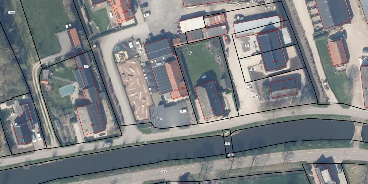 Het perceel waarop Benedeneind NZ 430-D staat heeft een oppervlakte van 2,3 ha. Dit is een zeer groot perceel. De perceeloppervlakte wordt geregistreerd door het Kadaster. Gedetailleerde informatie over de maten van dit perceel kunt u vinden in het rapport Kadastrale kaart met maatvoering van Benedeneind NZ 430-D.
