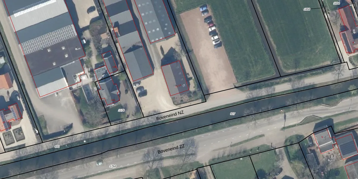 Het perceel waarop Boveneind NZ 14 staat heeft een oppervlakte van 1,6 ha. Dit is een zeer groot perceel. De perceeloppervlakte wordt geregistreerd door het Kadaster. Gedetailleerde informatie over de maten van dit perceel kunt u vinden in het rapport Kadastrale kaart met maatvoering van Boveneind NZ 14.