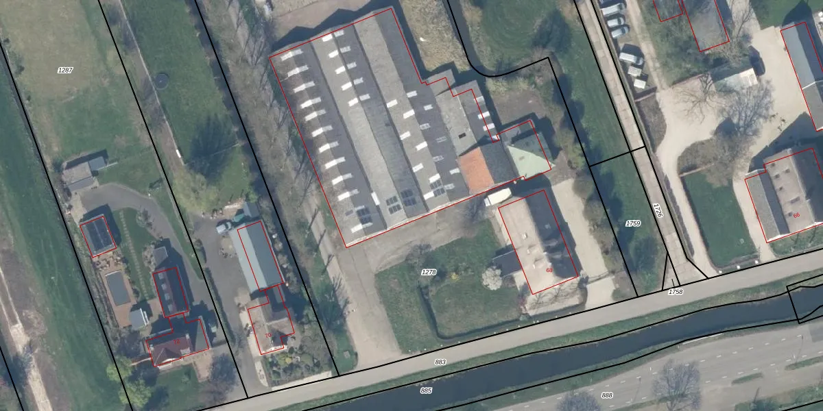 Het adres is gelegen op perceel 1278 in de sectie E en de kadastrale gemeente Lopik. De kadastrale aanduiding is aldus LPK00-E-1278. De gemiddelde perceelgrootte in Lopik is 1,1 ha. Dit perceel is kleiner: de perceeloppervlakte bedraagt 7035 m². Het grootste perceel in de kadastrale gemeente is 33,7 ha. Het kleinste perceel heeft een oppervlakte van 0 m². Op het perceel zijn 2 adressen aanwezig. In de Basisregistratie Kadaster (BRK) werden de grenzen van het perceel geregistreerd op 02-06-2017.